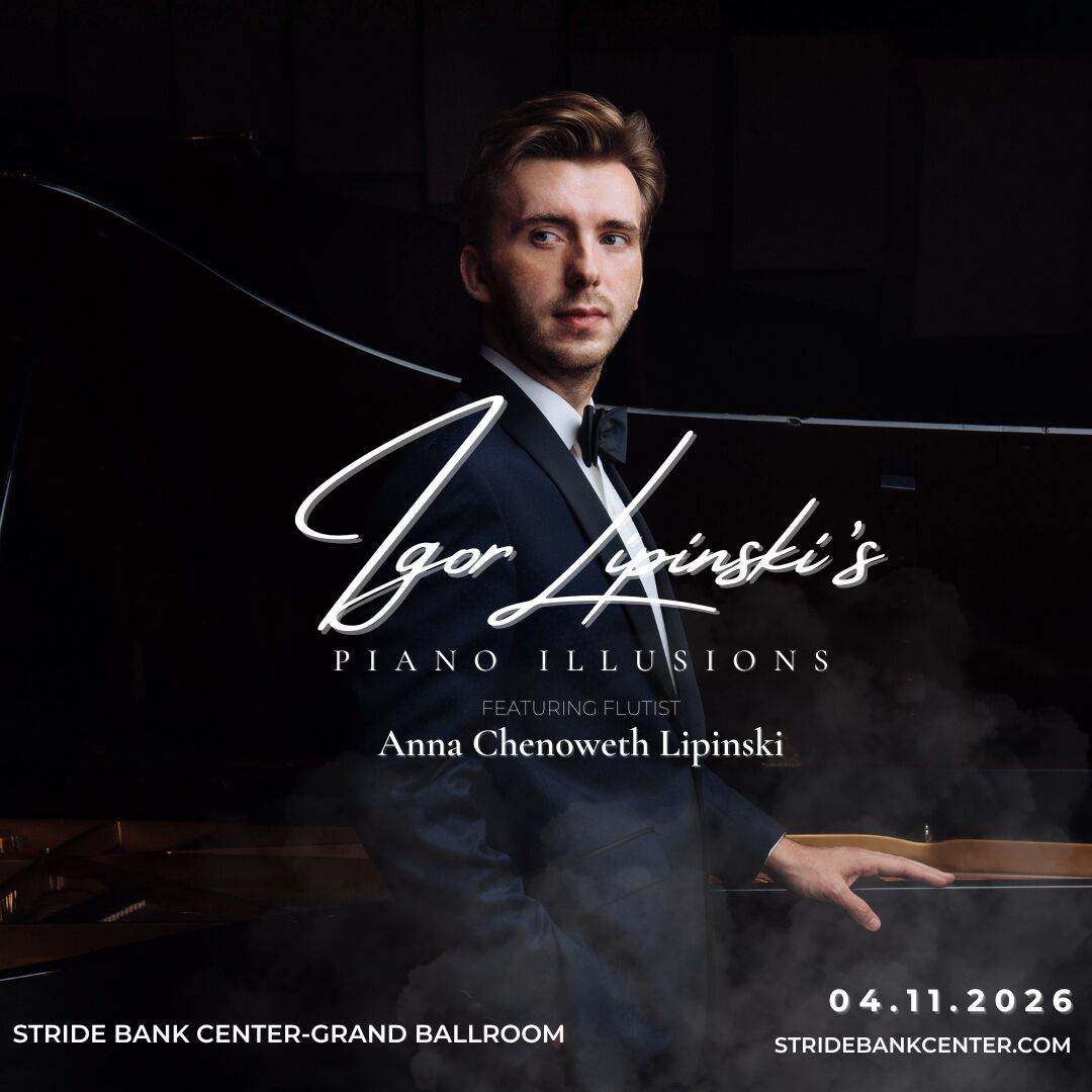 Stride Bank Center is excited to announce Piano Illusions, starring internationally acclaimed pianist and entertainer Igor Lipinski, coming to the Grand Ballroom on April 11, 2026. This captivating live performance blends virtuosic piano playing, humor, storytelling, and interactive elements into a one-of-a-kind concert experience for audiences of all ages.