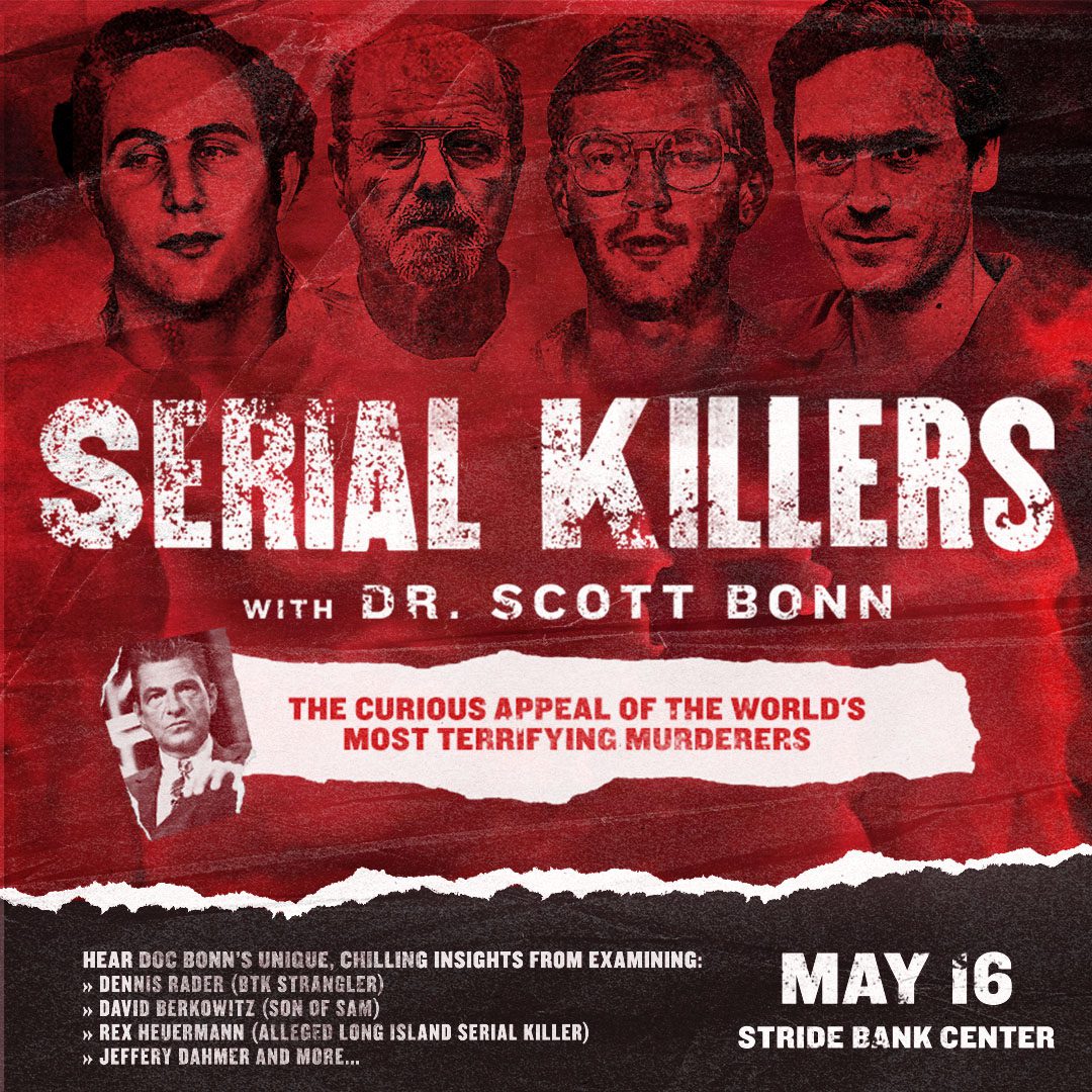 Spend a deliciously chilling evening with renowned criminologist and serial killer expert, Dr. Scott Bonn, as he takes you inside the minds of the world’s most savage and prolific murderers.