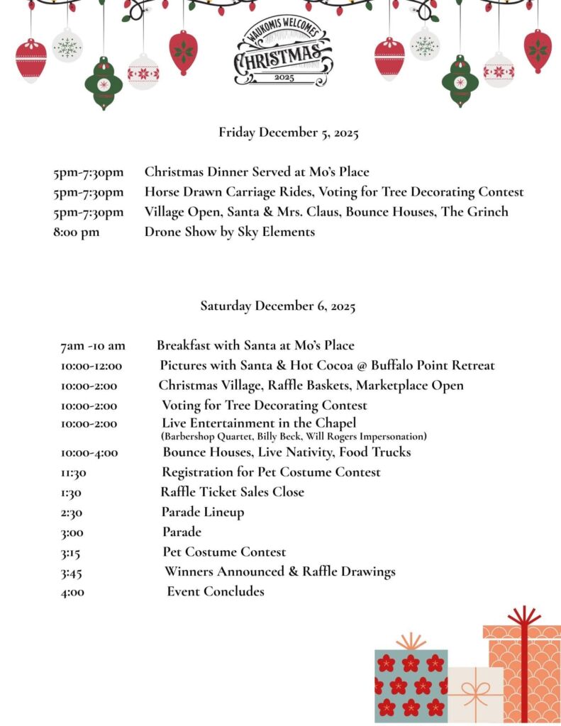 Waukomis Welcomes Christmas is coming December 5th & 6th, 2025. Two magical days filled with holiday cheer, lights, music, shopping, and small-town Christmas spirit.